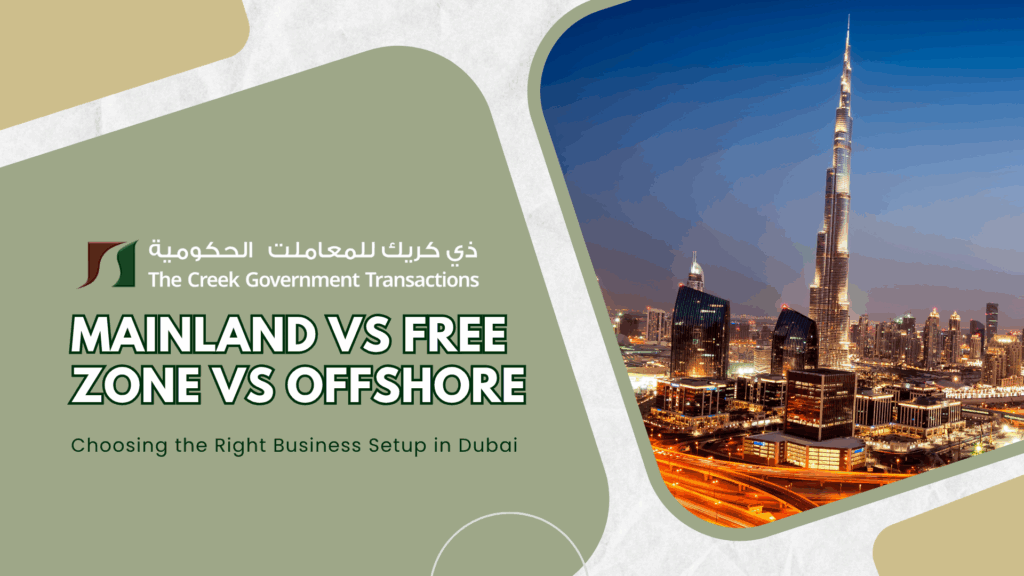 What distinguishes Dubai’s mainland, free zone, and offshore business setups from one another?